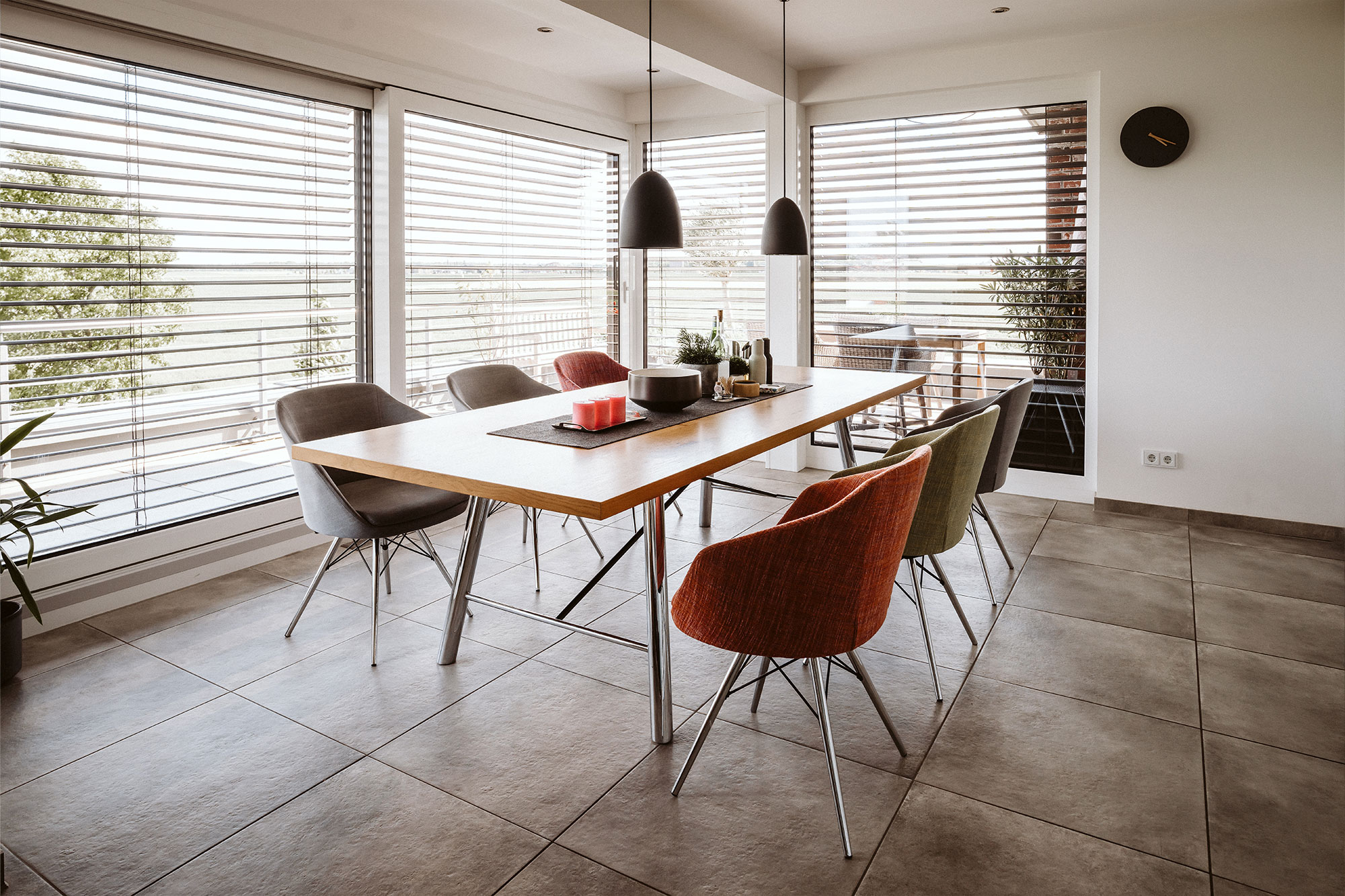 Im Erdgeschoss befinden sich 2 Wohnungen, welche optional zu einer Wohnung zusammenschaltbar sind. Die 3 Zimmerwohnung im Staffelgeschoss ist offen gestaltet und hat eine große nach Süden ausgerichtete Dachterrasse.