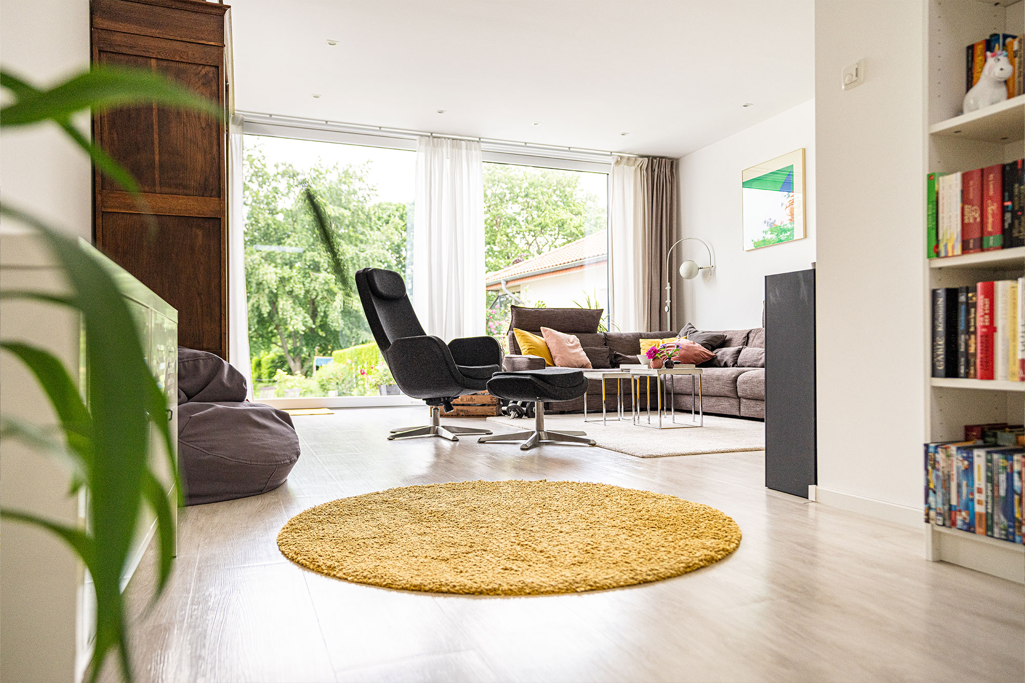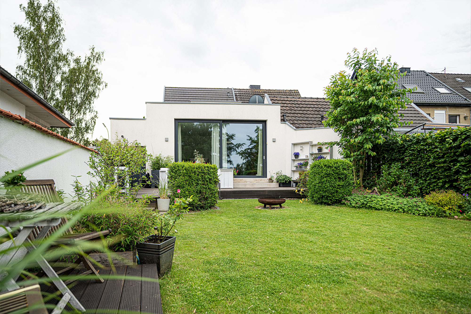 Am Ende sind lediglich die Außenwände erhalten geblieben. Die alten Holzdecken sind durch Betondecken ersetzt worden. Daher wirkt die Doppelhaushälfte heute eher wie ein Neubau.